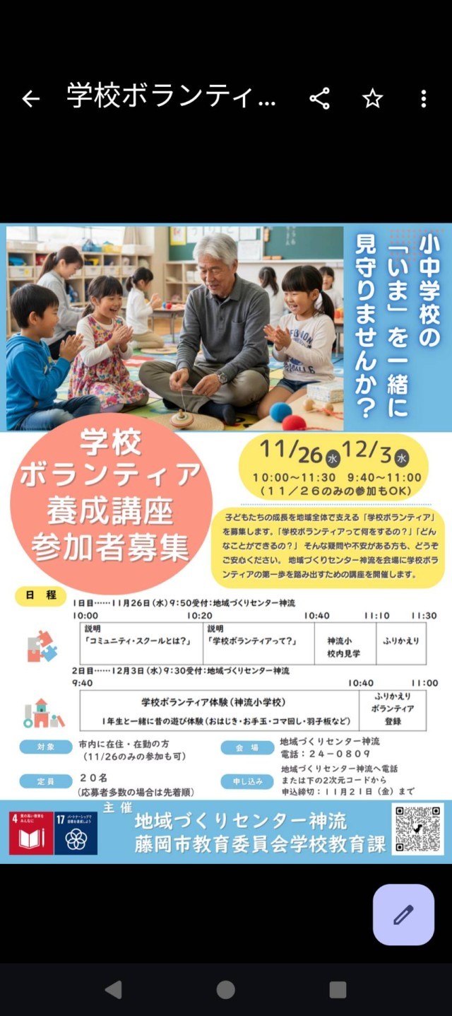 このボランティア講座はコミュニティ・スクールにおける「地域学校協働活動ボランティア」の周知と拡大をねらって行われました。