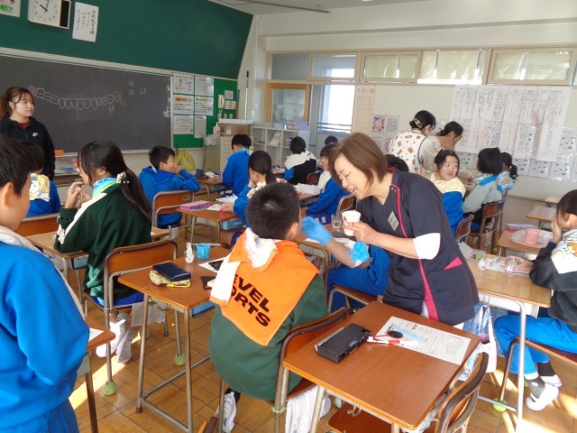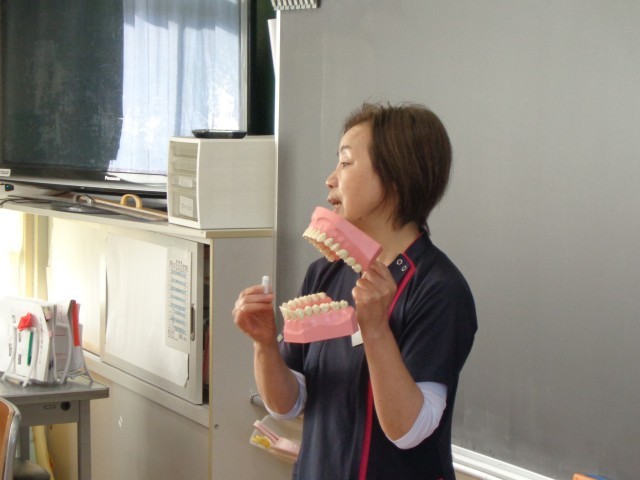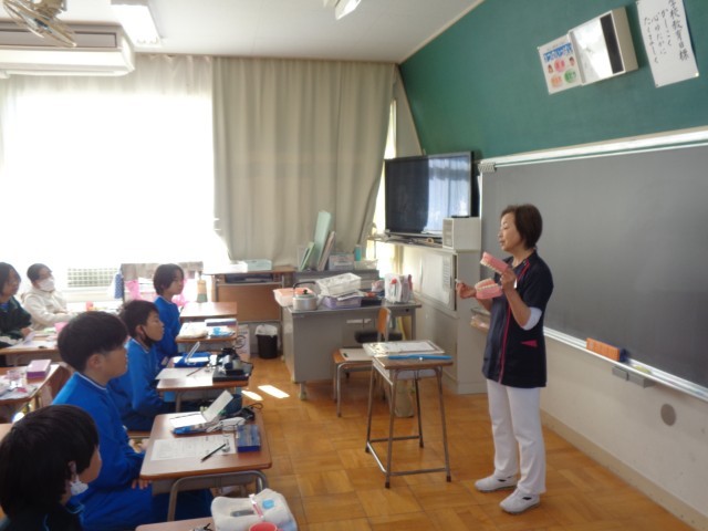 27日(木)の2・3校時、1年生と6年生の教室では藤岡市の歯科衛生士と保健師さんをお迎えし、歯科保健出前講座の授業を受けました。