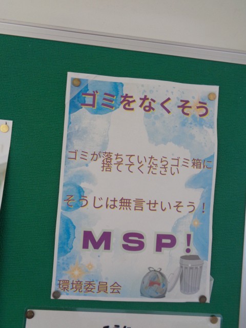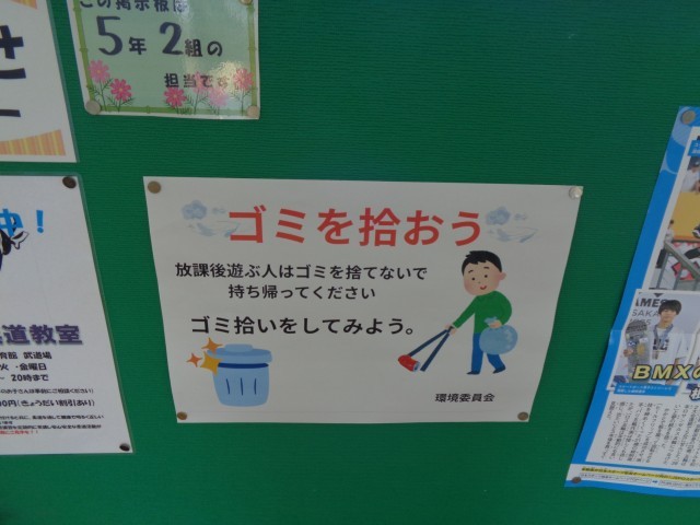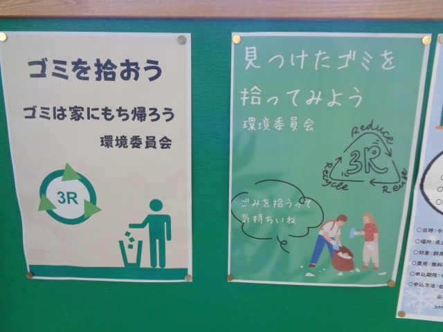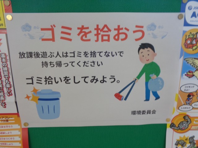 先週まで実施していた今回の「人権集中学習」では、いろいろな専門委員会ごとに人権かかわる活動を企画しました。その一環で環境委員会では、「ゴミひろい」を呼びかけてくれています。