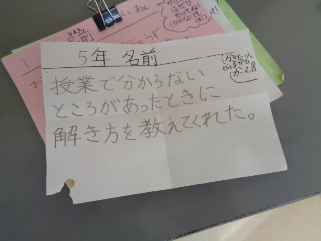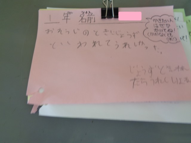 ○ そうじのとき、じょうずだねっていわれた。(1年生)・・・ほめてもらうとやる気になりますね。