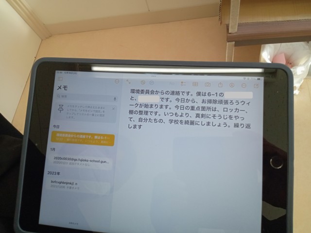 昼の放送で環境委員会から全校に「お掃除がんばろうウィーク」連絡がありました。