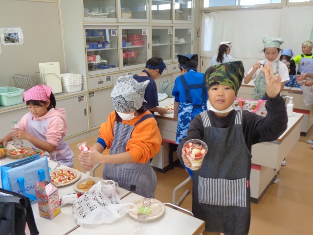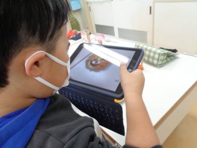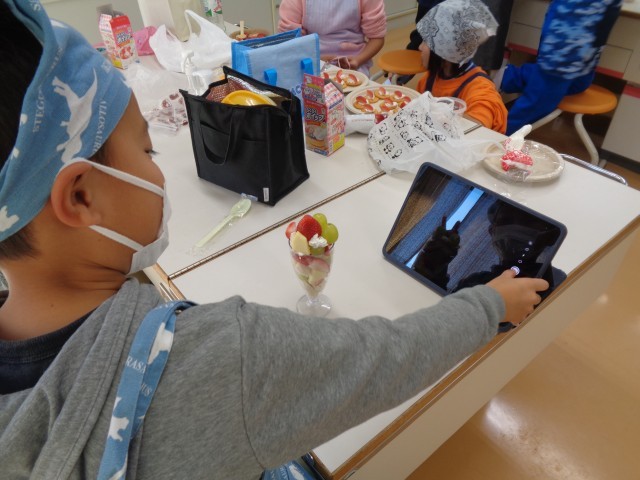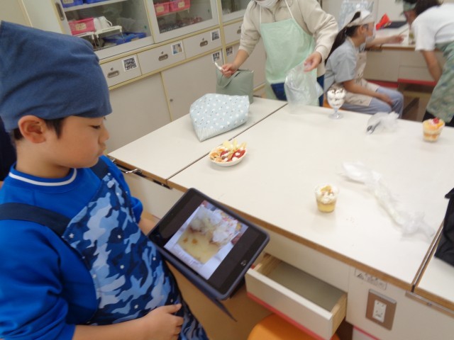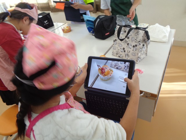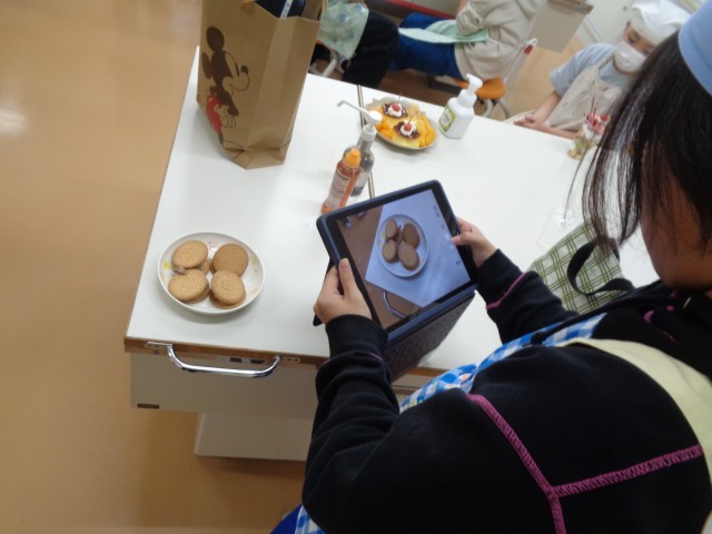 作ったお菓子は、自分のタブレットで撮影して保存し、家で家族に見せるようです。