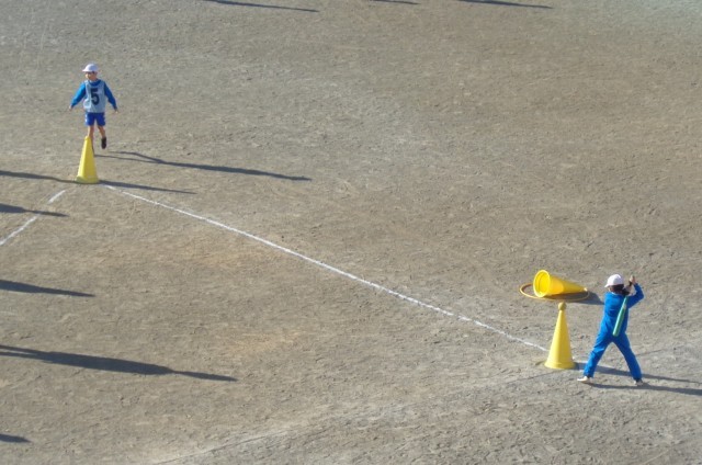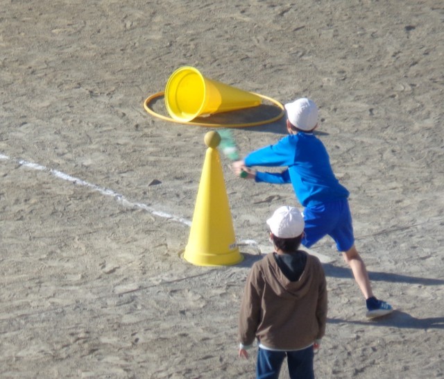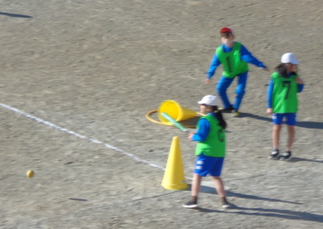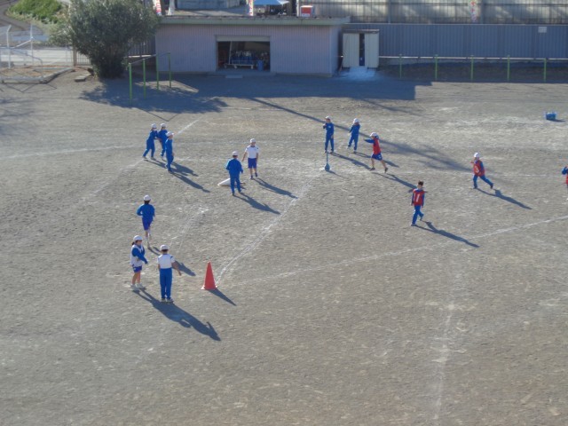 ベースボール型ゲームです。上の階の空き教室から見ていました。