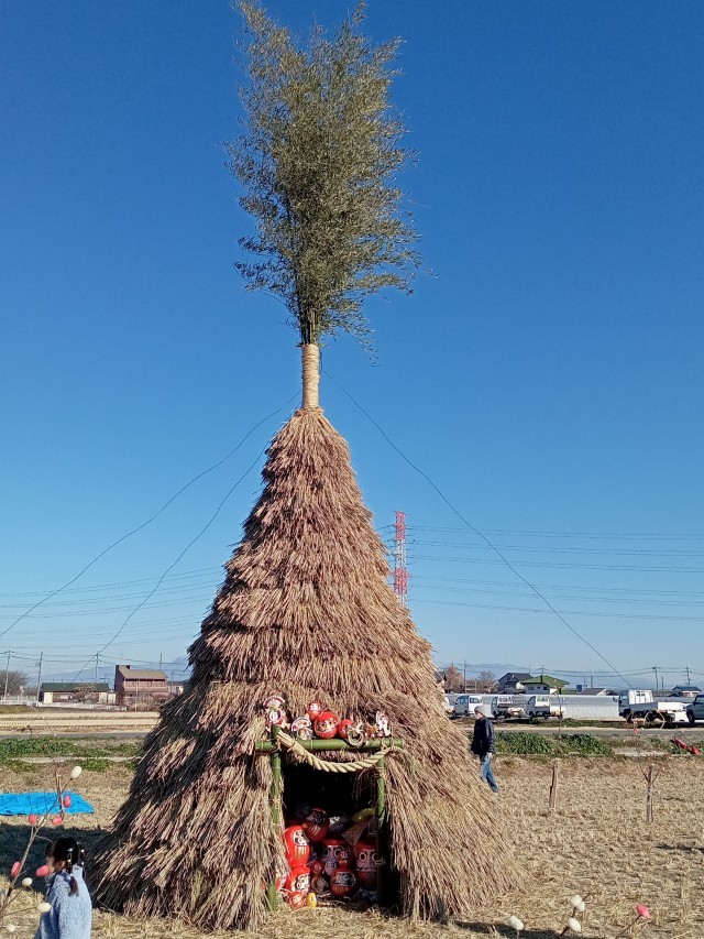 畑には、立派な櫓が組まれ、昨日子供たちもお手伝いをして作った繭玉も飾らていました。