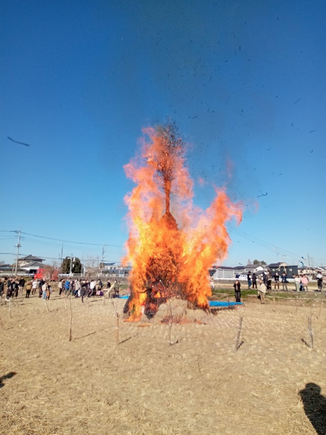 10日(土)下戸塚地区の「どんど焼き」が行われました。今年1年の健康祈願やお札や達磨などのお焚き上げをする恒例の伝統行事です。