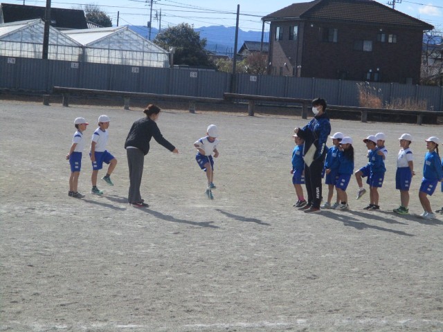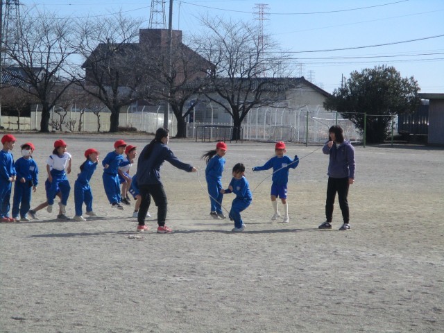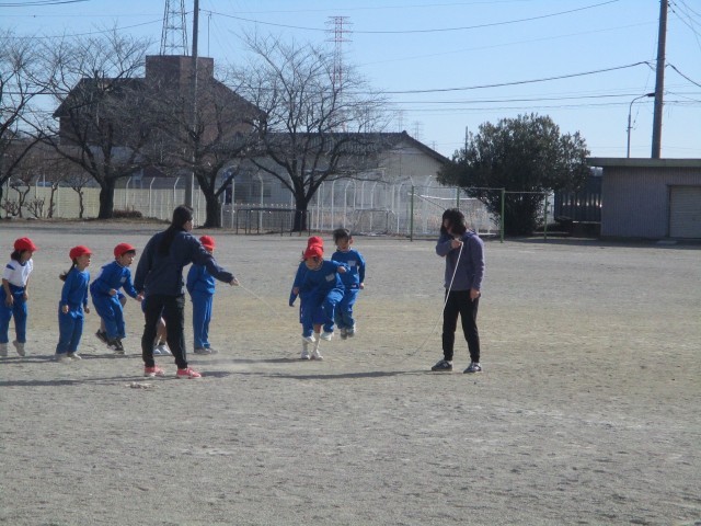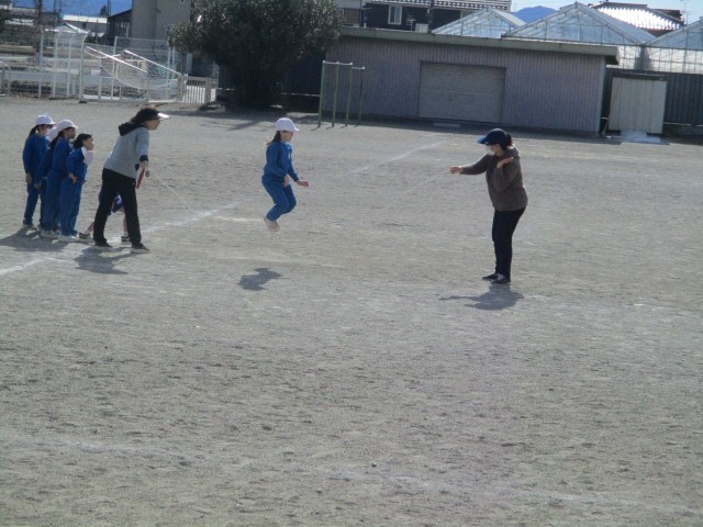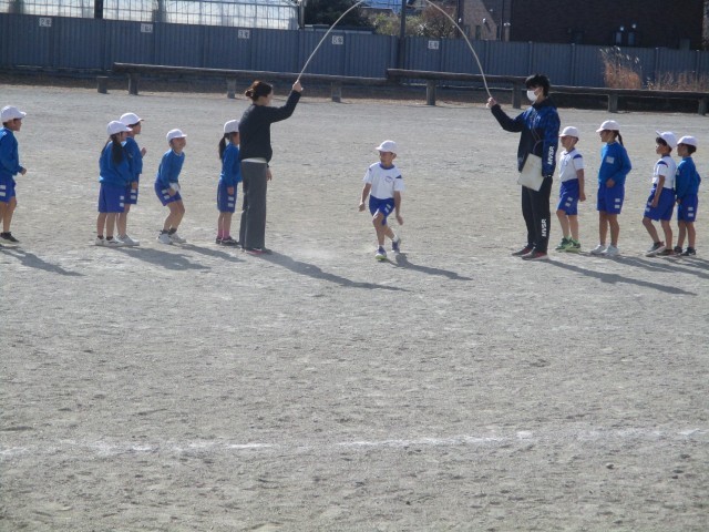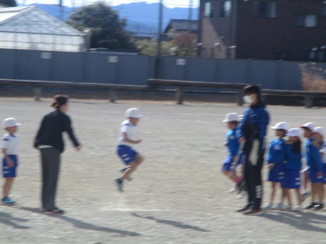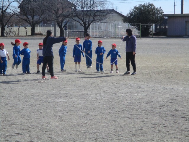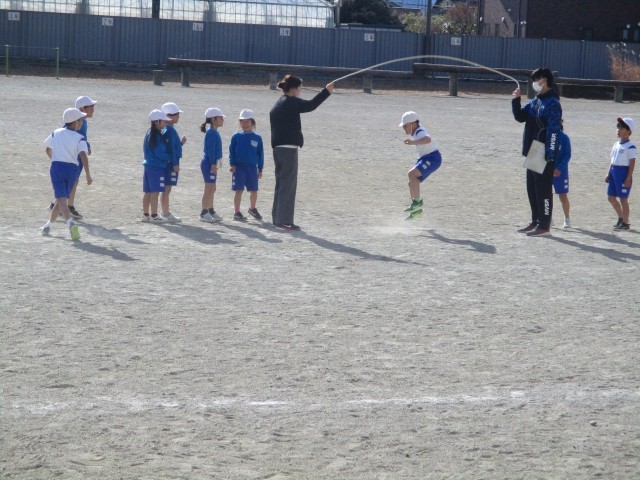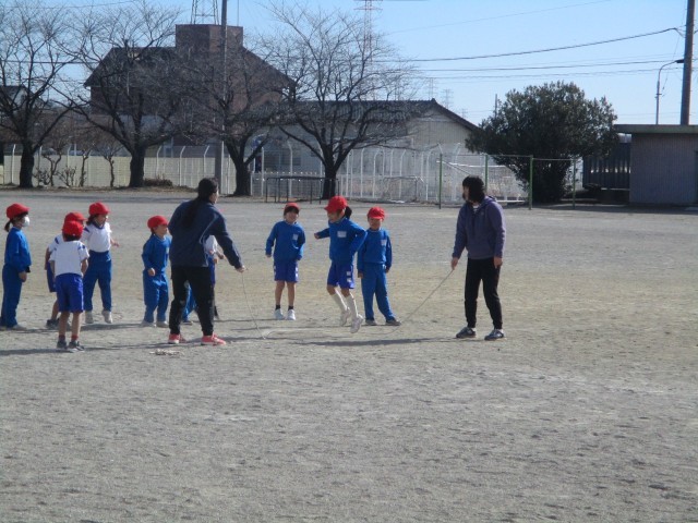1・2年生は、外で「ながなわ」にチャレンジしていました。