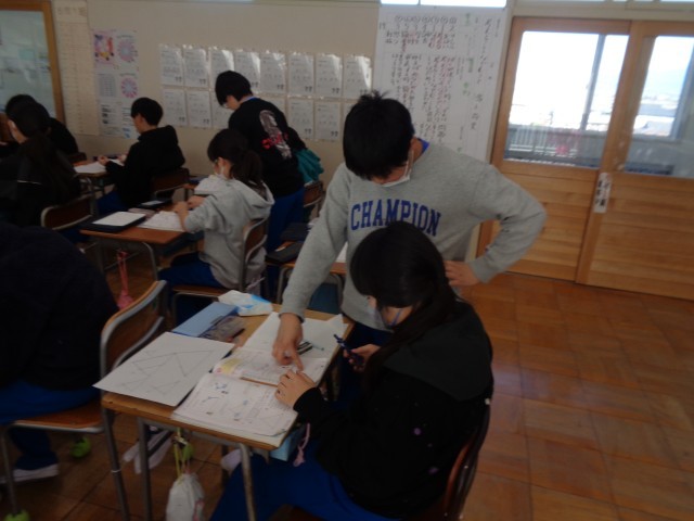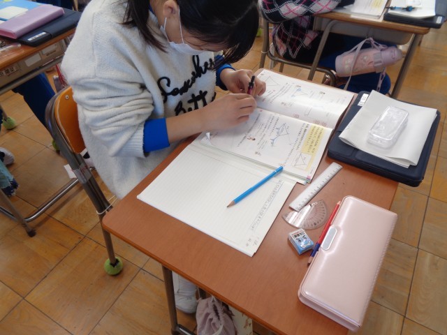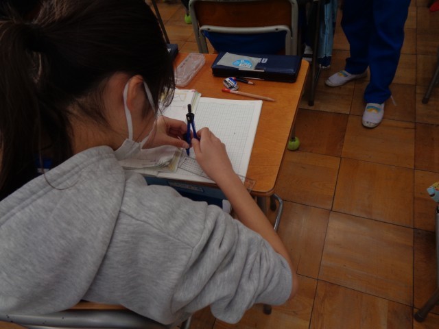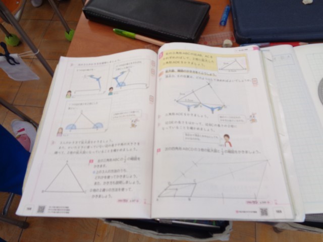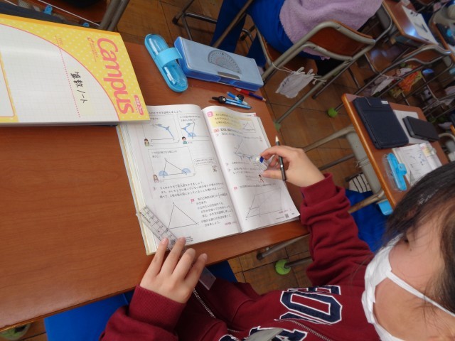 定規とコンパスを使って、ポイントは「それぞれどこの長さを何㎝をはかりとったらよいか?」ですね。