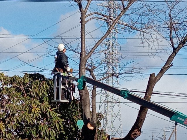 本校職員駐車場の北側の道路沿いにある桜の木ですが、クビアカツヤカミキリの被害により、本日(終日)、伐採することになりました。