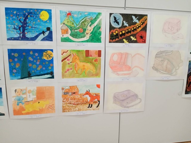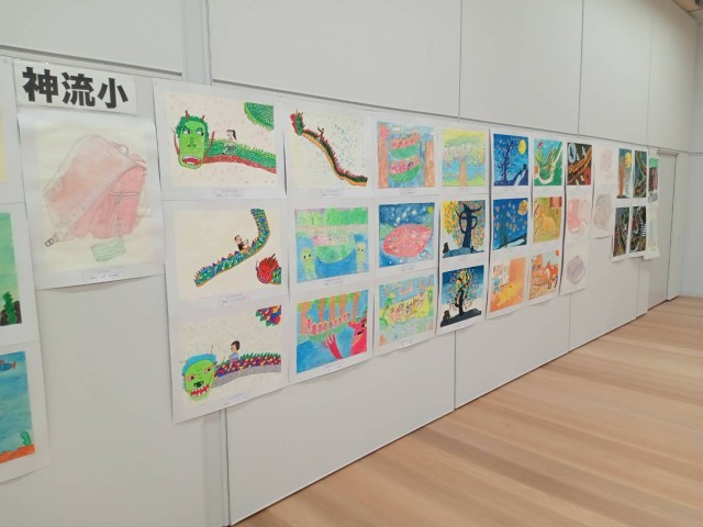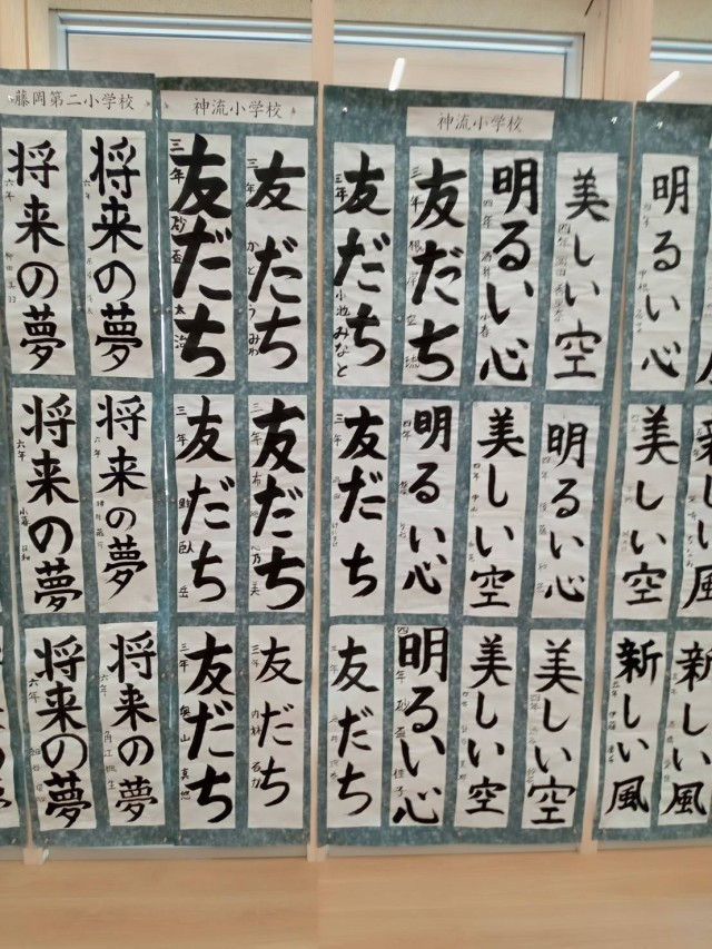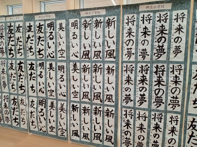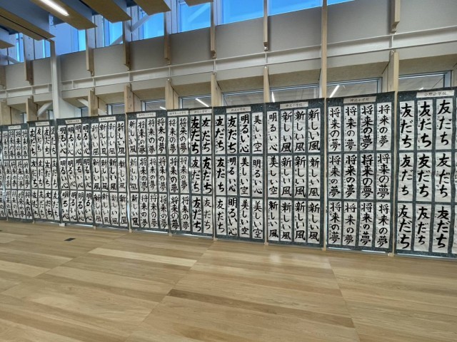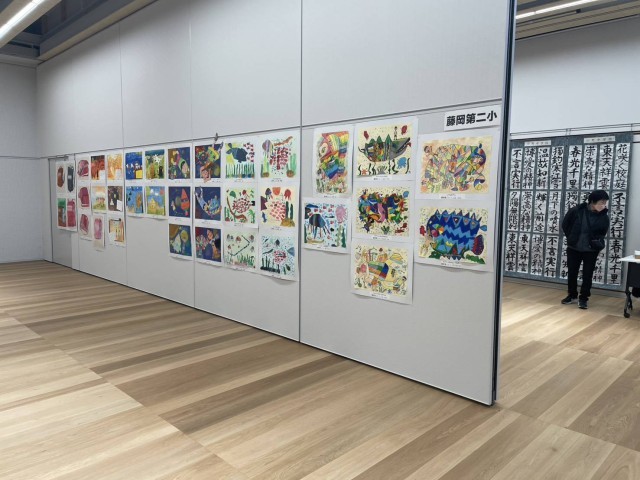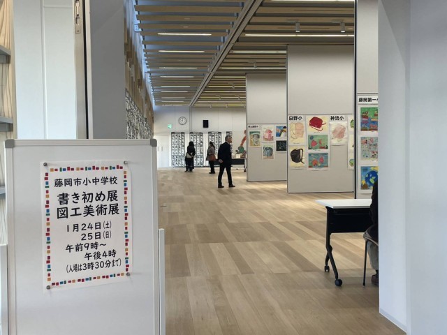 24日(土)藤岡市小中書初め、図工美術展が藤岡市複合施設ふじまるで、行われています。