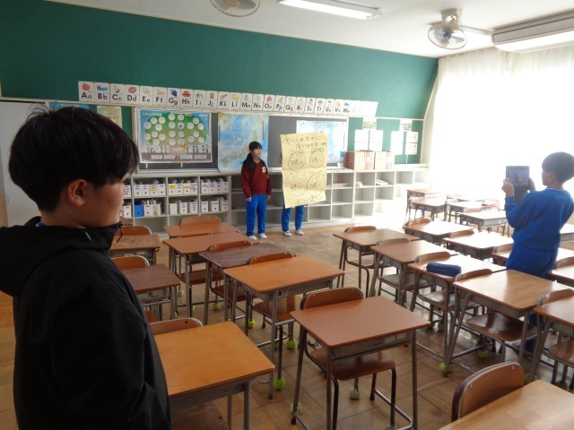 27日(火)業前の時間に、給食委員会では各クラスを回って、自分で企画制作した動画「ぼくの食べ方これでいいの?」を流して、SDGSについて啓発活動を行いました。