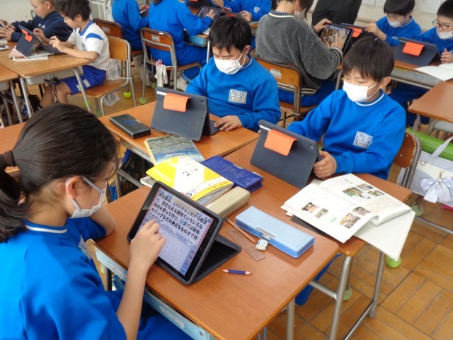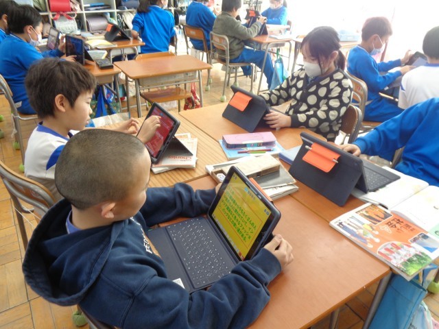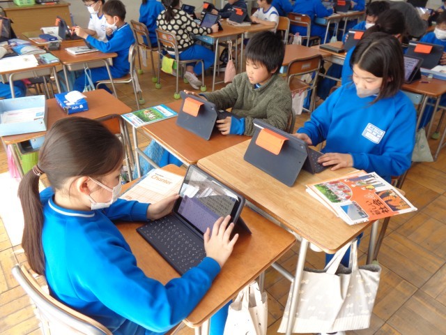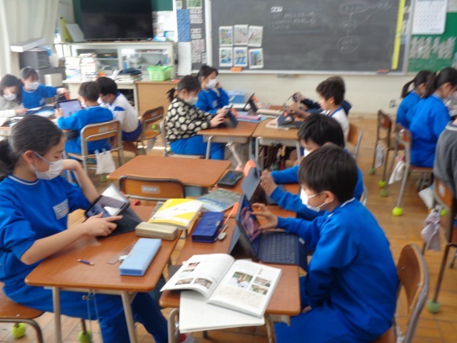 各自、集中して調べて、タブレットにまとめていました。