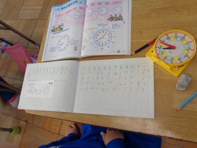 今日は時計の読み方を勉強していました。