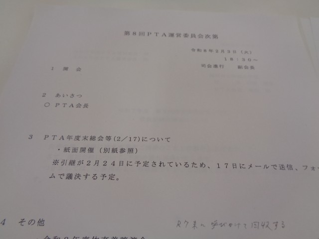 2月3日(火)PTA監査委員会&運営委員会