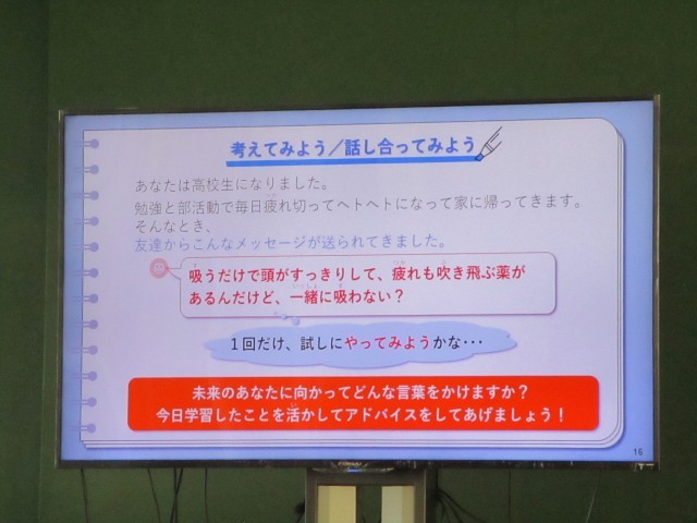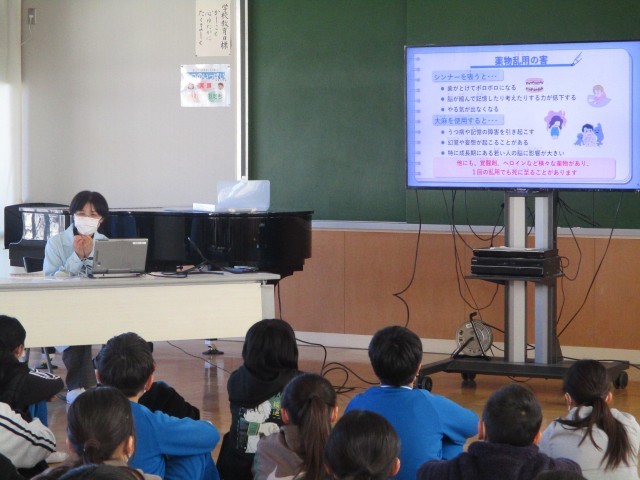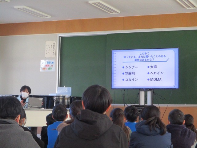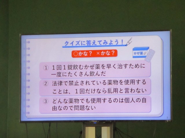 学校薬剤師の先生をお招きして薬物乱用防止教室が開かれました。