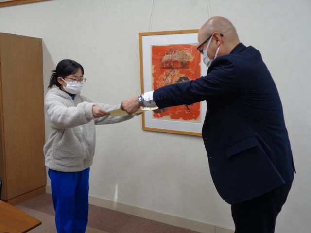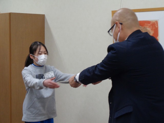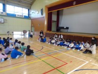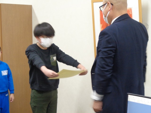 インフルエンザ感染症予防のため、今回も校長室から教室とつないで行いました。