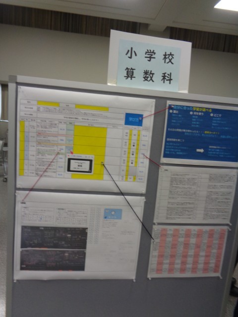 本校在籍の先生の発表ブースでは、本校の5・6年生の算数の授業での実践の様子が掲示され、集まってくださった先生方に神流小での実践発表を行っていました。