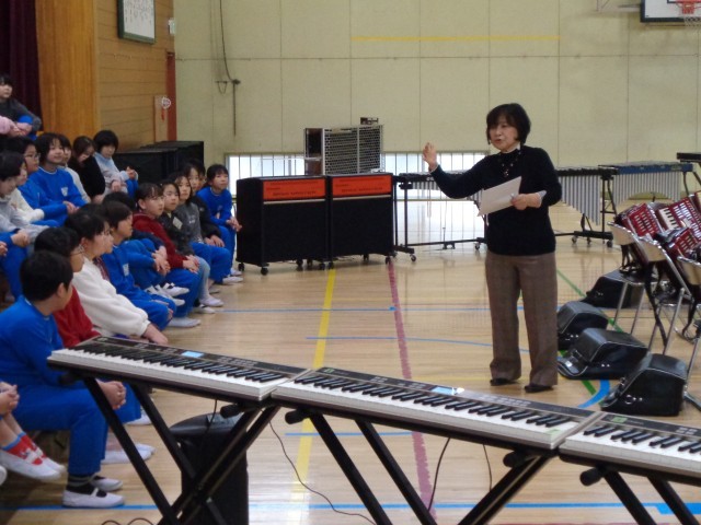 合唱ボランティアとして来校してくださったのは、前回同様、現在もユネスコ合唱団での指導者であり、かつて神流小合唱部が全国大会に出場したときの指導者の先生です。