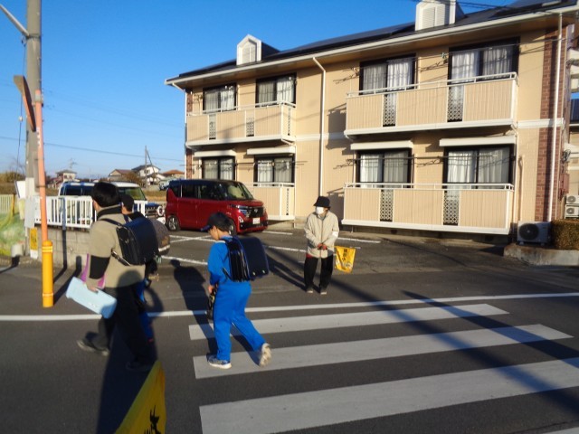 その他の交差点でも交通当番の保護者の皆さんや区長会の皆さんによる交通安全見守り活動が行われています。