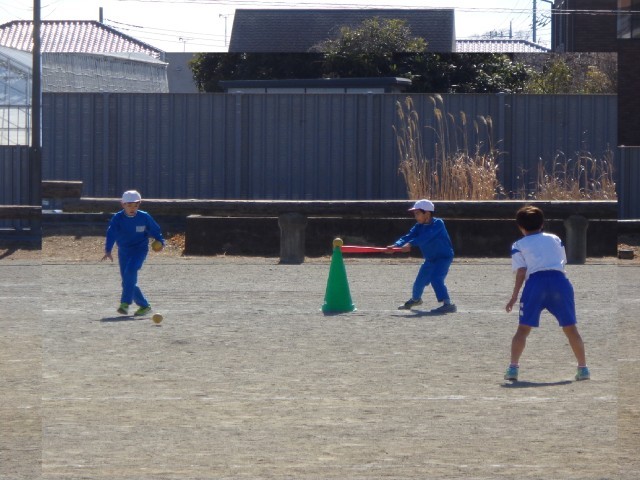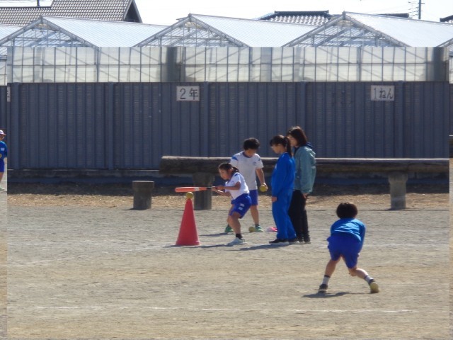 細いバットで小さいボールを打つのはなかなか難しいようでした。