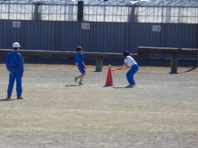 ベースボール型ゲームのティーバッティングの練習をしました。