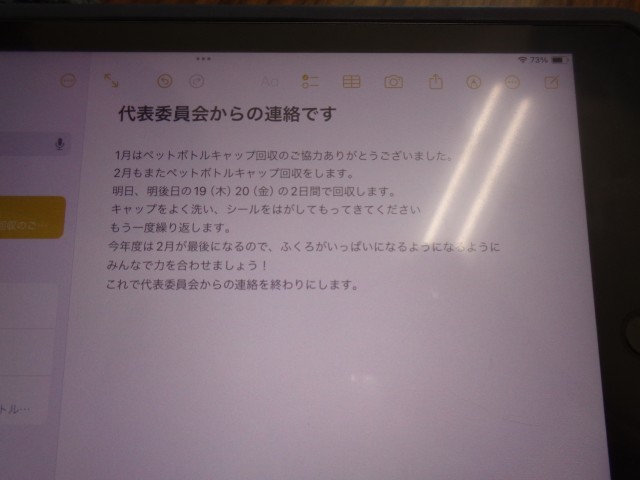 2月18日(水)代表委員より(ペットボトルキャップ回収最終回です。)