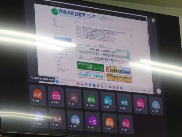 今日は、群馬県教育センターの長期研修員として1年間授業づくりについて研究を進めている本校在籍の先生が講師になり、1年間の成果や来年度の校内研修テーマについて講義形式で研修しました。