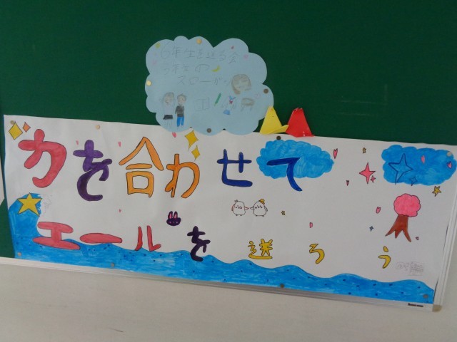 明日明後日に迫った「6年生を送る会」「学習発表会(授業参観)」に向けて、校内に5年生が作成したソローガンやポスター-が掲示されていることは、過日に紹介したところですが、3年生の廊下に行ってみると、3年生独自のスローガンが掲示されていました。紹介します。