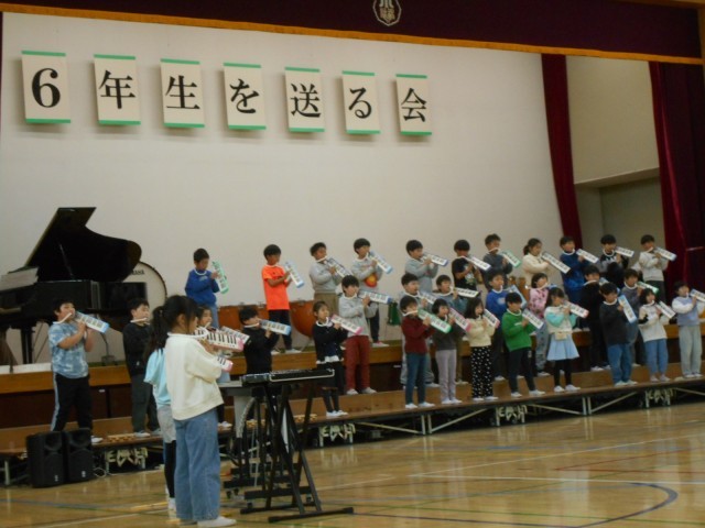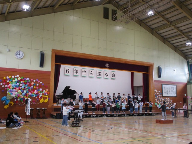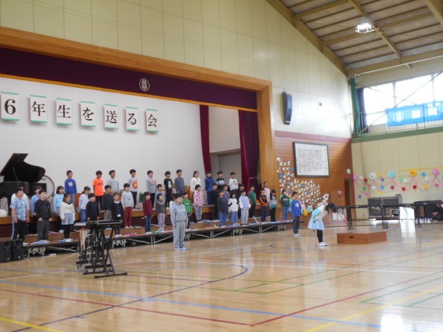 写真は、2年生と司会をする5年生の様子です