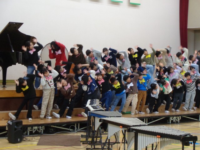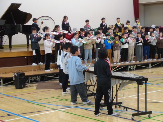 3年生は、合奏「小さな世界」・歌「ミッキーマウスマーチ」