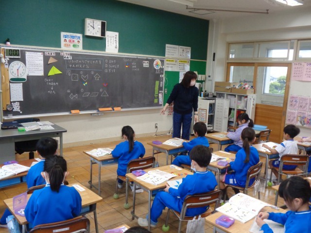 1年1組算数「かたちづくり」の授業の様子です。