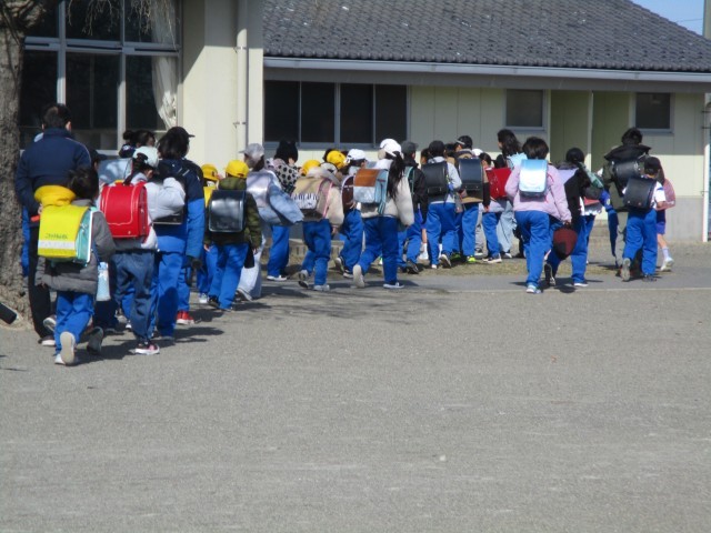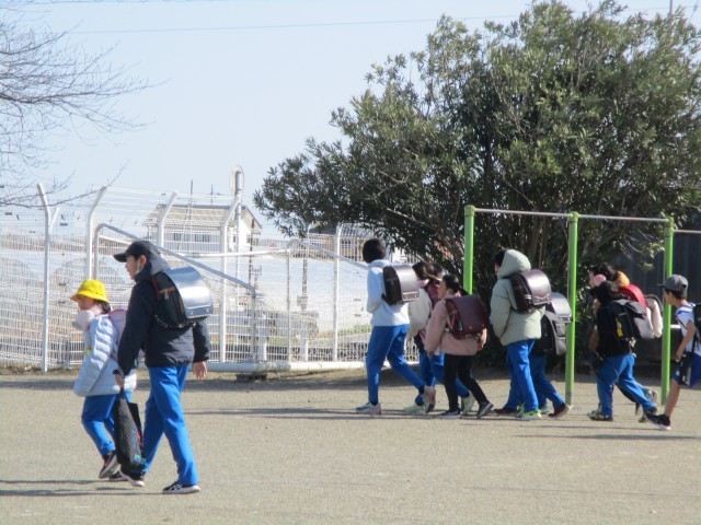 その後、校庭に集まって、集団下校でかえりました。