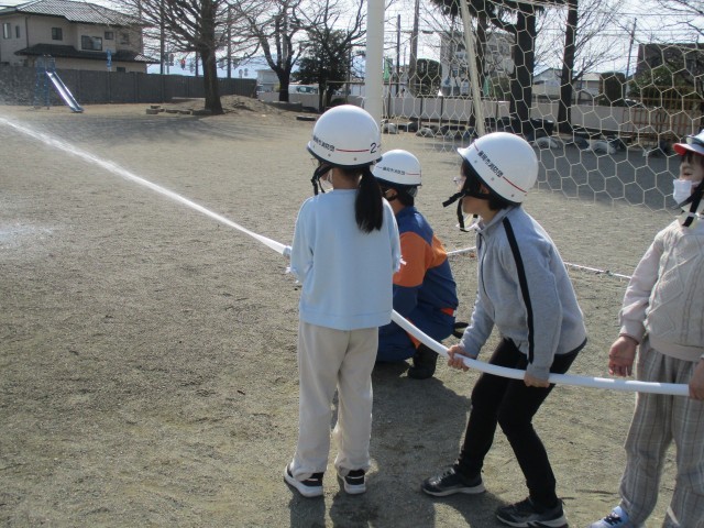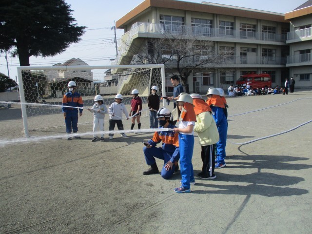 この講習は、藤岡市地域安全課と藤岡消防団第二分団の方々にお世話になって、実際の消火活動を体験させていただきとともに、地域を守る消防団の役割をしっかり教わる機会としています。
