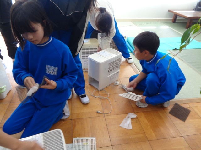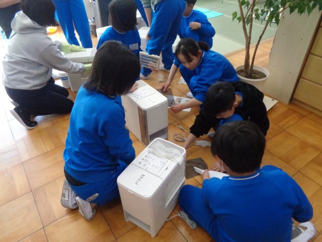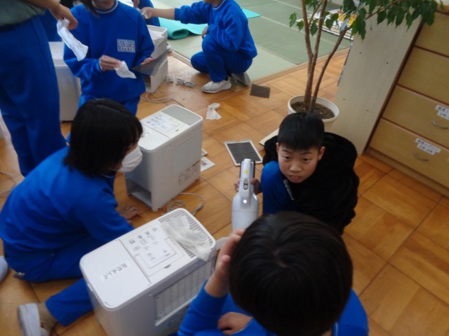 6日(金) の昼休みに、保健委員会の児童は、各教室の加湿器の片付けをしてくれました。