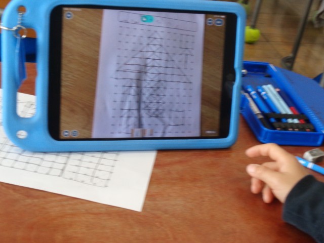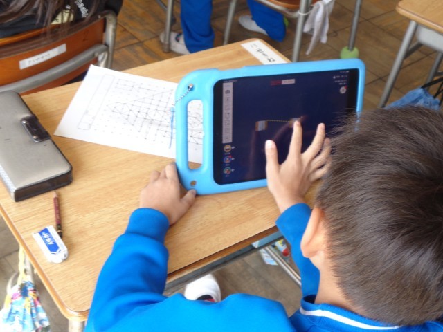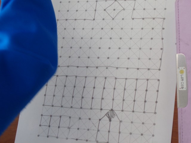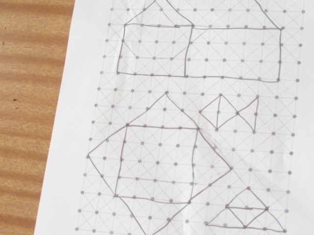 今日は、点と点をむすんで、かたちを作りました。