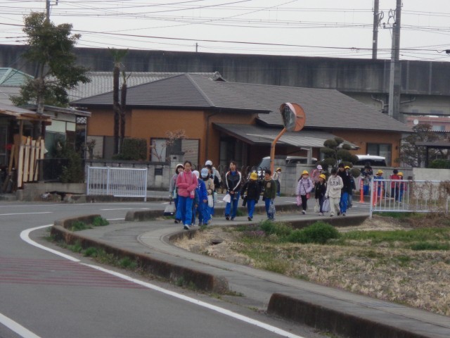 23日(月)、6年生にとっては登校班による登校もあと2日になりました。