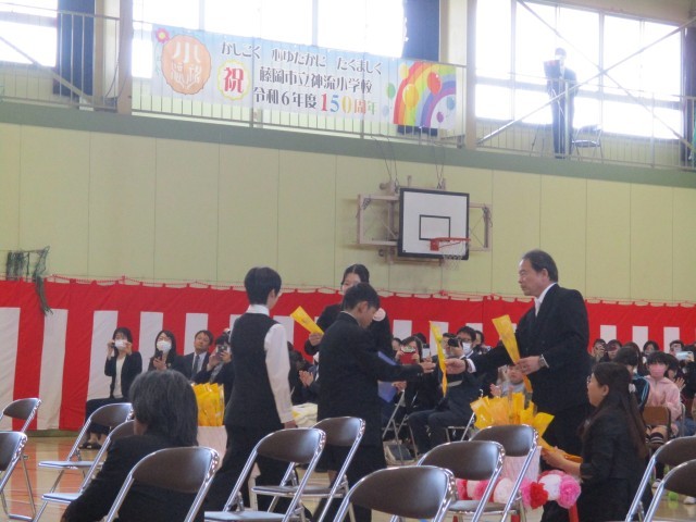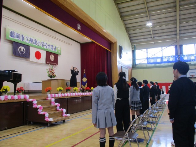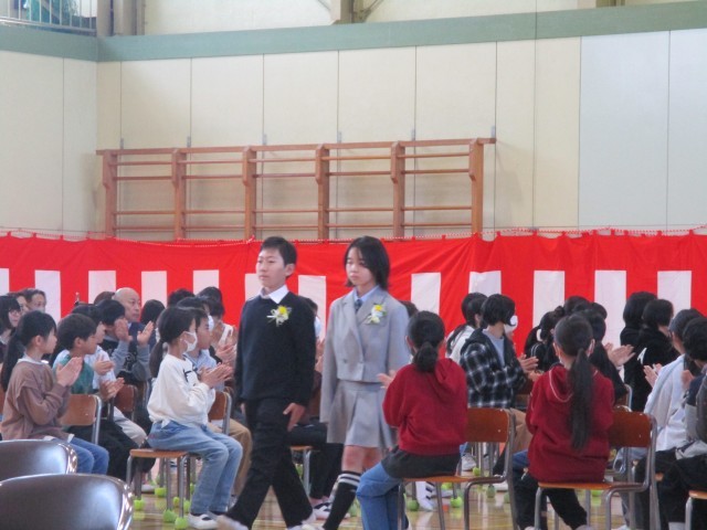 多くのご来賓と保護者の方々、さらに、今年はコロナコ禍以来初となる在校生代表5年生児童に見守られる中、入場から、終盤、卒業生合唱・式歌・退場まで感動とともに、卒業式は終了しました。