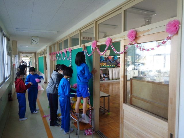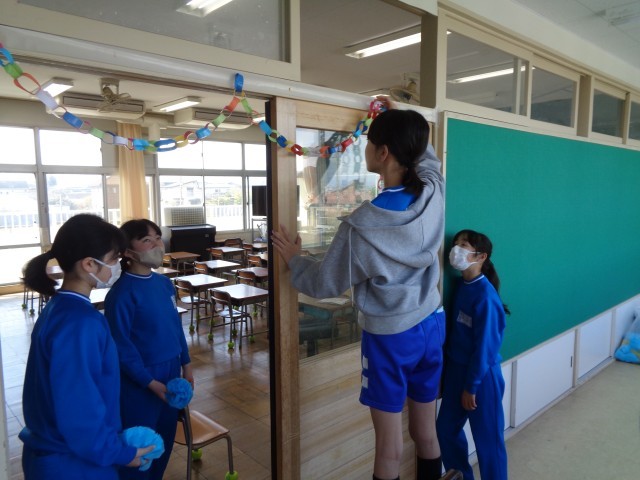 6日(月)、新6年生が登校し、新年度に向けた準備を行いました。