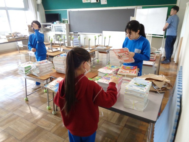 入学式の準備や校舎内の清掃、新学期から使用する教科書の運搬など、それぞれの役割でさまざまな活動に取り組みました。