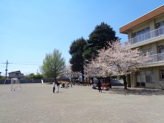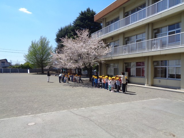 昨日の強風にも耐えて、校庭北側の桜はまだ咲き続けています。