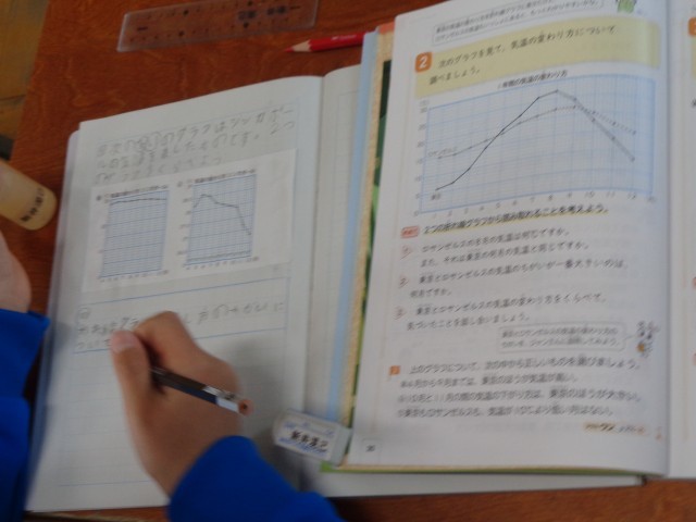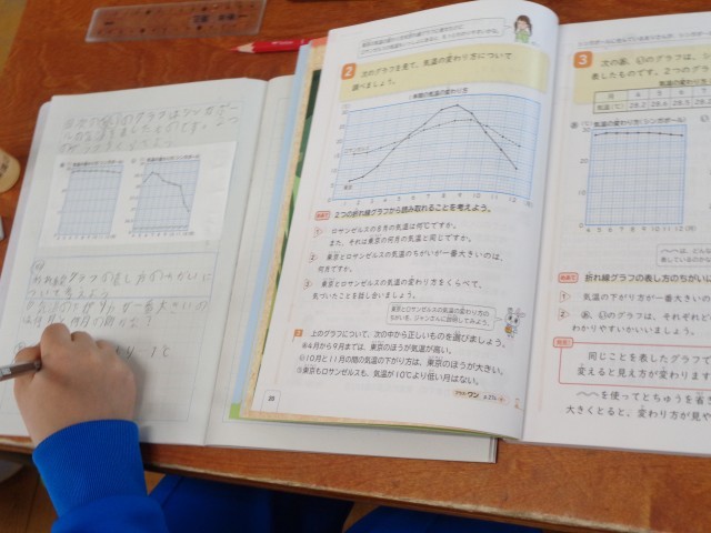 今日は、折れ線グラフの表し方の違いについて、学習しました。