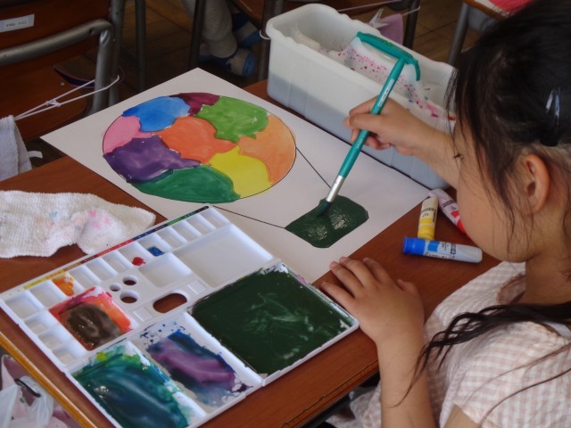 いろいろな色をじぶんで作って、じぶんだけのききゅうを仕上げていました。
