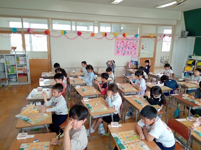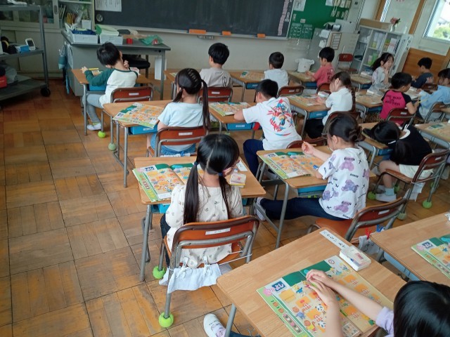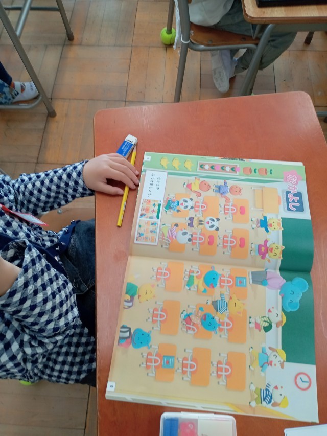 ○で囲めたら、次は、そのどうぶつの上に、おはじきをのせてみましょう。