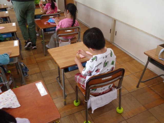 1年1組に行ってみると、お道具箱から「のり」を出して、キャップをとってみました。
