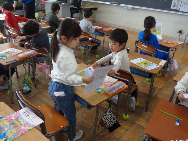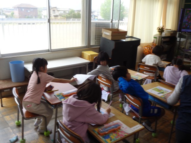 1年生は初めてのことばかりですが、今日は、初めてのプリントに挑戦しました。