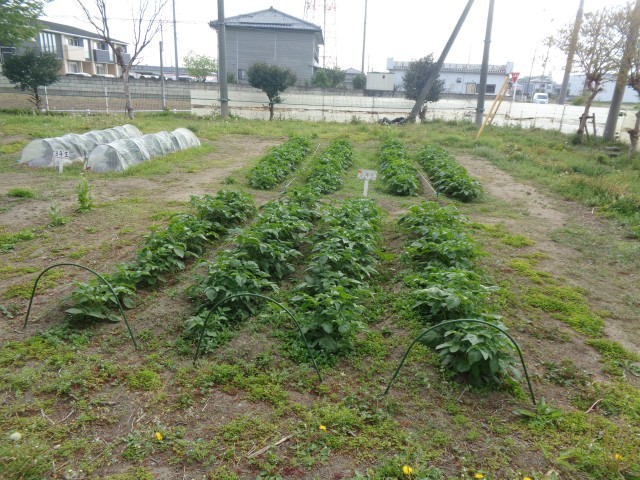 桜の季節は終わりましたが、その向こう側にある畑に行ってみると、これからのそれぞれの学年での学習を思い浮かべながら植物の成長が感じられました。