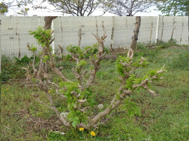 畑の脇には、桑の木に新しい葉がたくさん芽生えてきていました。
