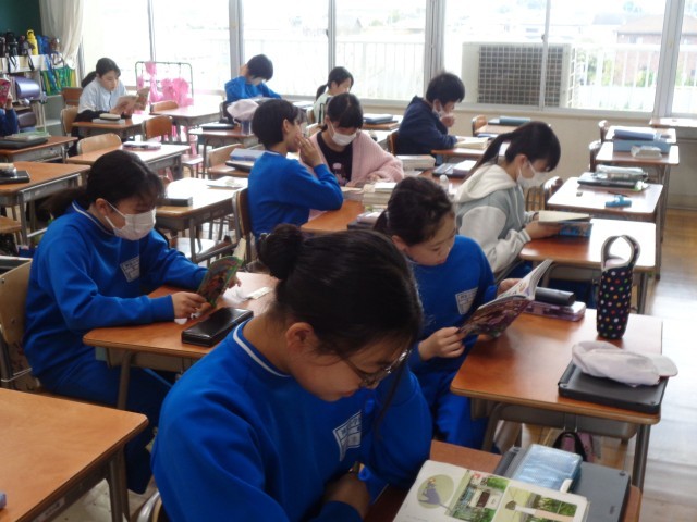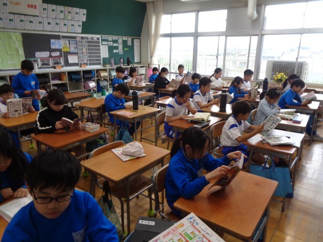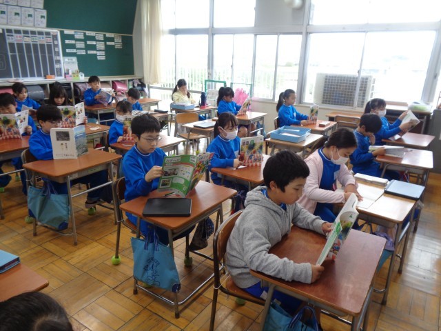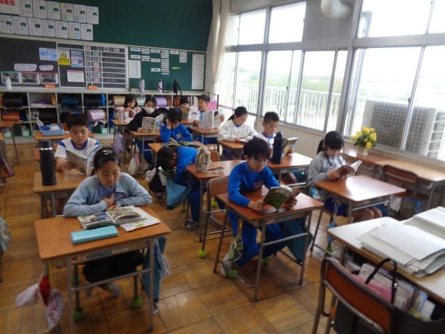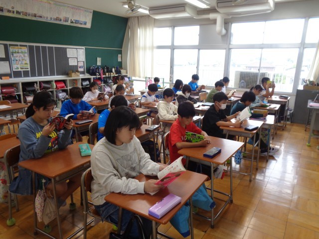 8時15分なると、各クラス自分の好きな本を自分の席で読みます。