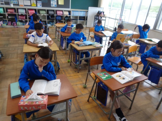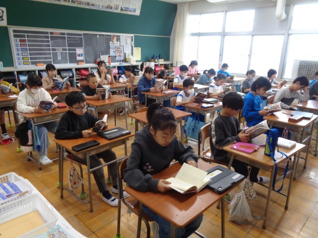 2年生以上の教室では、読書に集中する姿がいっぱいありました。