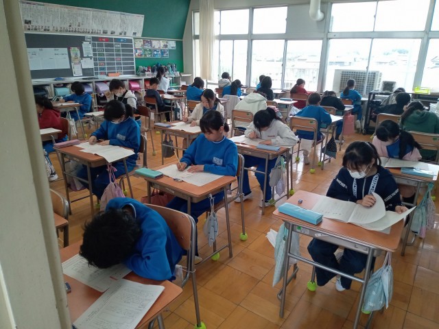 23日(木)、午前中。6年生では全国学力学習状況調査を実施しました。
