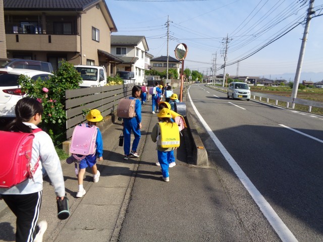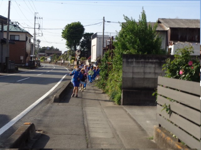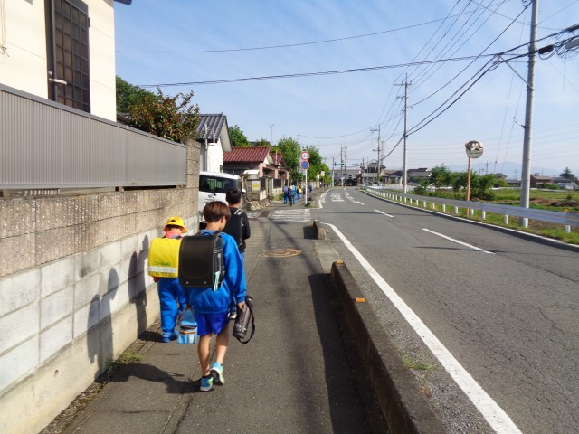 保健所から公会堂に向かう道の安全状態を確認するために、実際に登校時間に歩いてみました。歩道がない道路ですが、車が結構通っていました。